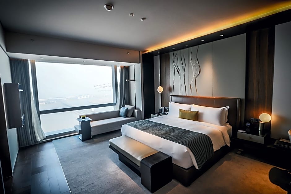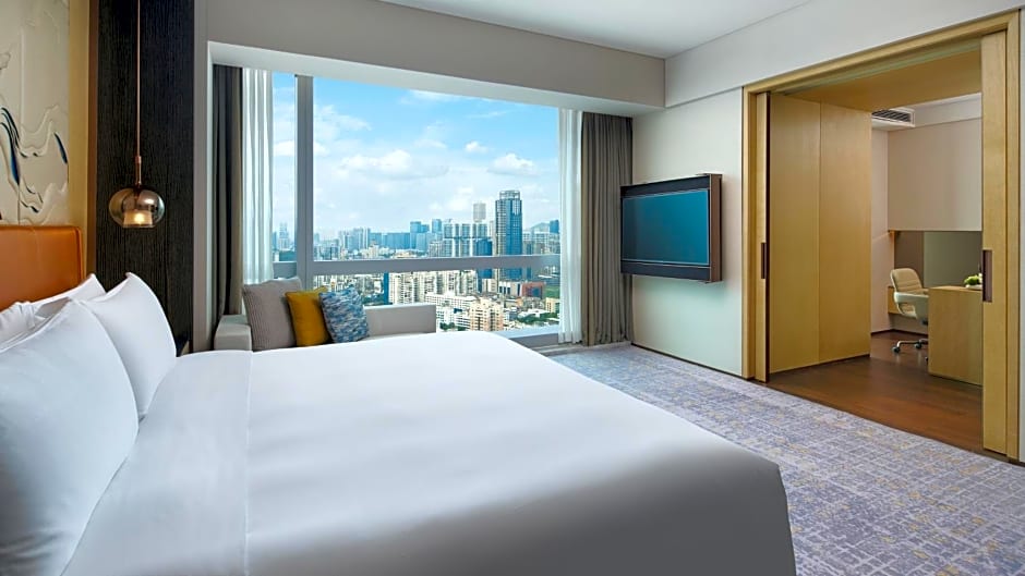1 King Premium HkZhMo Bridge Sea View Club Access is 646 square feet and includes a king-size bed 150-183 width plus extra beds on demand, hairdryer, tea and coffee making facilities , safe, and bathrobes and is Wheelchair-accessible.